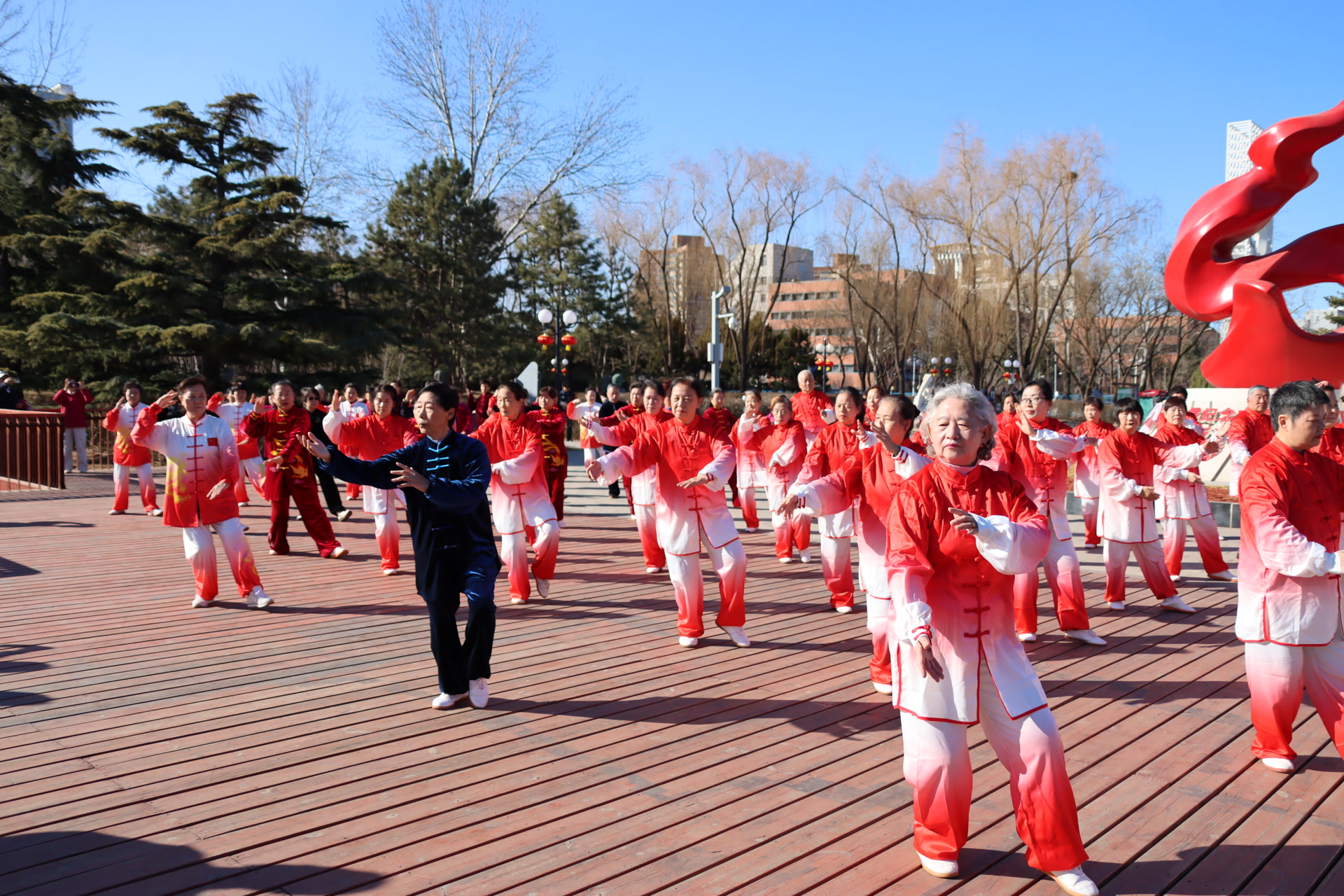 “大家动起来,新年新气象,让我们健身过大年!”2月18日上午,由北京市社会体育指导员协会指导、石景山区武术协会组织的“运动健身过大年”全民健身主题活动在北京国际雕塑公园举行。活动吸引了近百名运动爱好者参与,大家在花样运动健身中热热闹闹过大年。