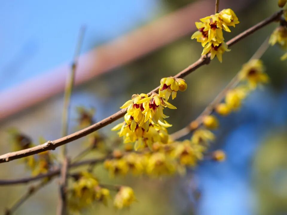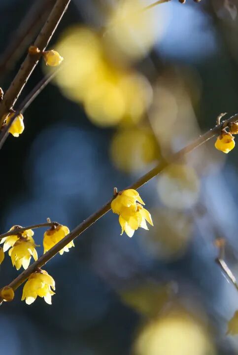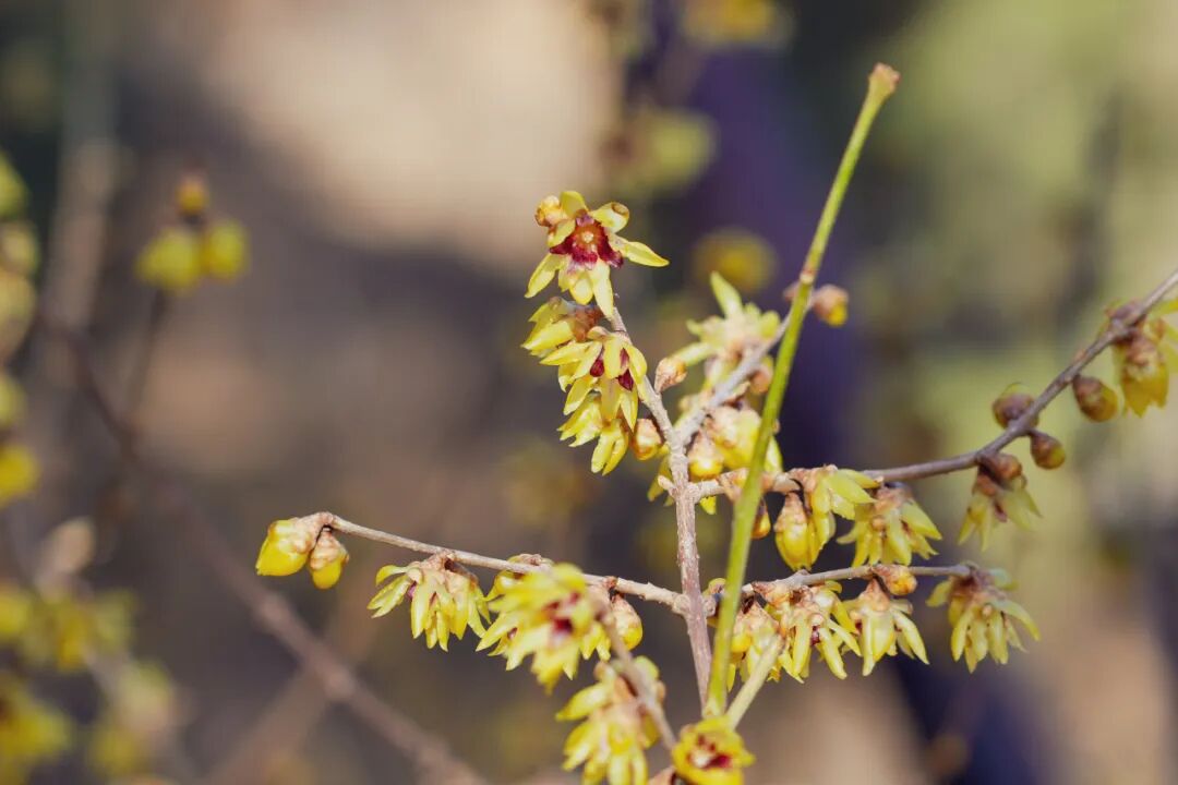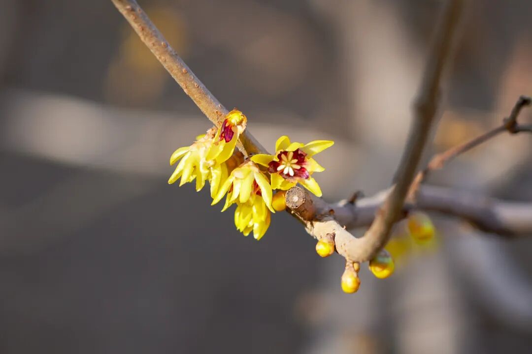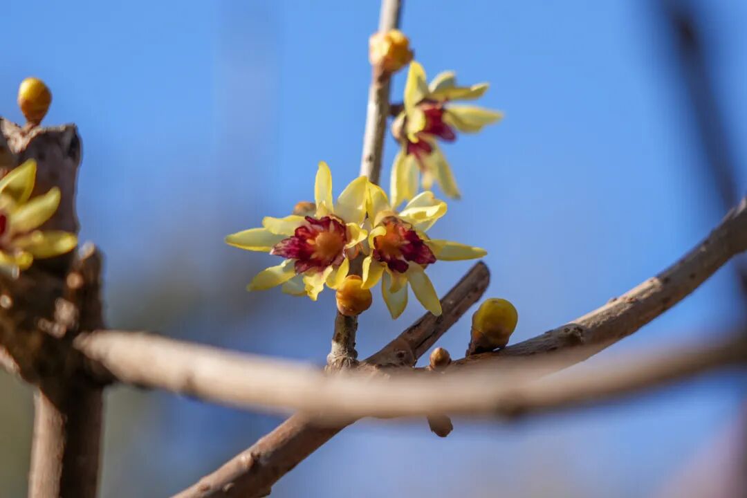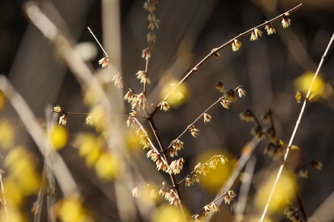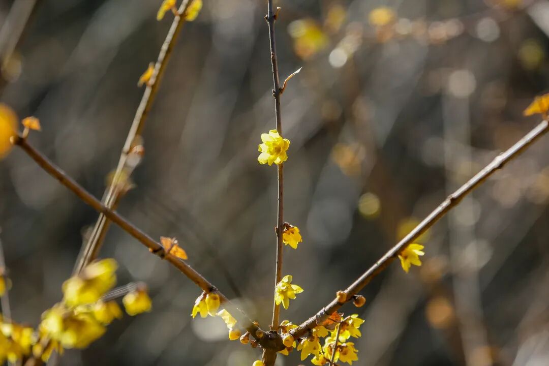 狗牙蜡梅小巧、花瓣细长尖俏,花色浅黄、香气清淡,花期最晚,目前仍含苞待放。