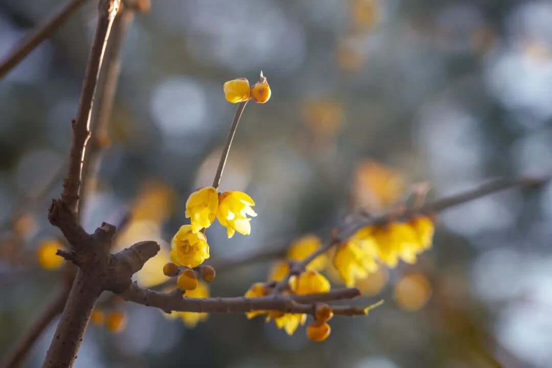 再和大家科普一个常见误区:蜡梅并非梅花,二者是不同花卉。蜡梅属蜡梅科,因花瓣似蜂蜡、香气类梅得名,早春绽放;梅花属蔷薇科,花期稍晚(现暂未开放),花色更丰富,二者各有风骨,赏梅时不妨仔细分辨。