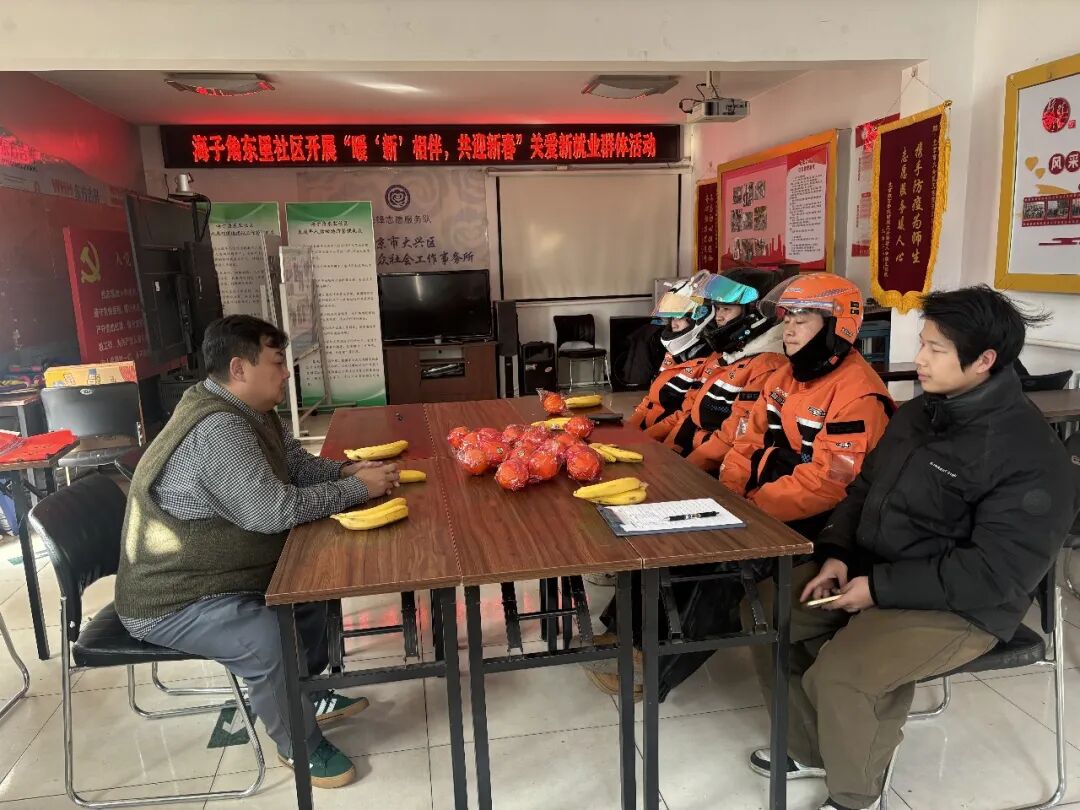 针对新业态群体,海子角东里社区精心组织举办了“暖‘新’相伴,共迎新春”关爱新就业群体活动,邀请辖区内外卖配送员代表欢聚一堂,共话家常,传递社区的温暖与祝福。天堂河社区开展“墨香四溢暖‘新’程”送春联活动,考虑到快递员“与时间赛跑”的特性,灵活设置领取时间,让忙碌的小哥也能收到“福”字与春联。新源时代中里社区党支部走访慰问快递站点,送上慰问物资,叮嘱注意安全,“感谢你们守护民生畅通!”一句句问候温暖着奔波的脚步。