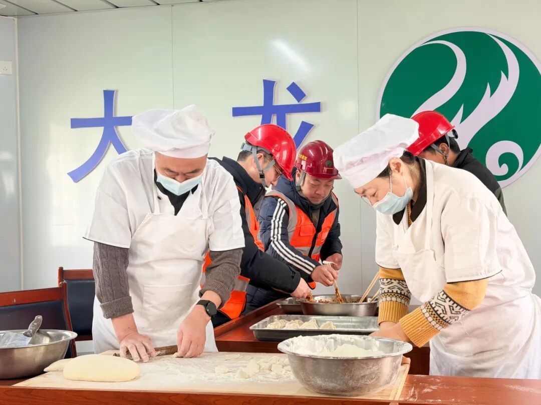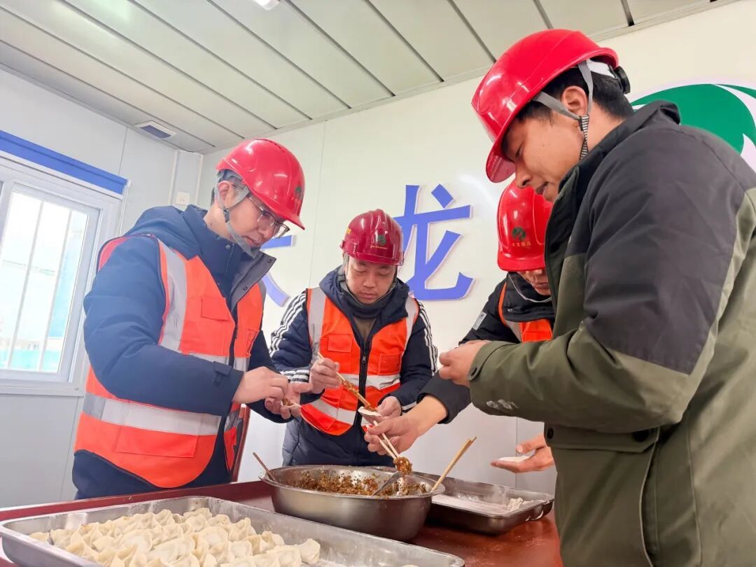 生活区内,项目部组织工人们一起包饺子。大家分工协作、有说有笑,擀皮、包馅、捏褶,一个个饱满的饺子承载着对新春的美好期盼。与此同时,工作人员有序发放新春慰问品,把关怀与温暖送到每名建设者手中。