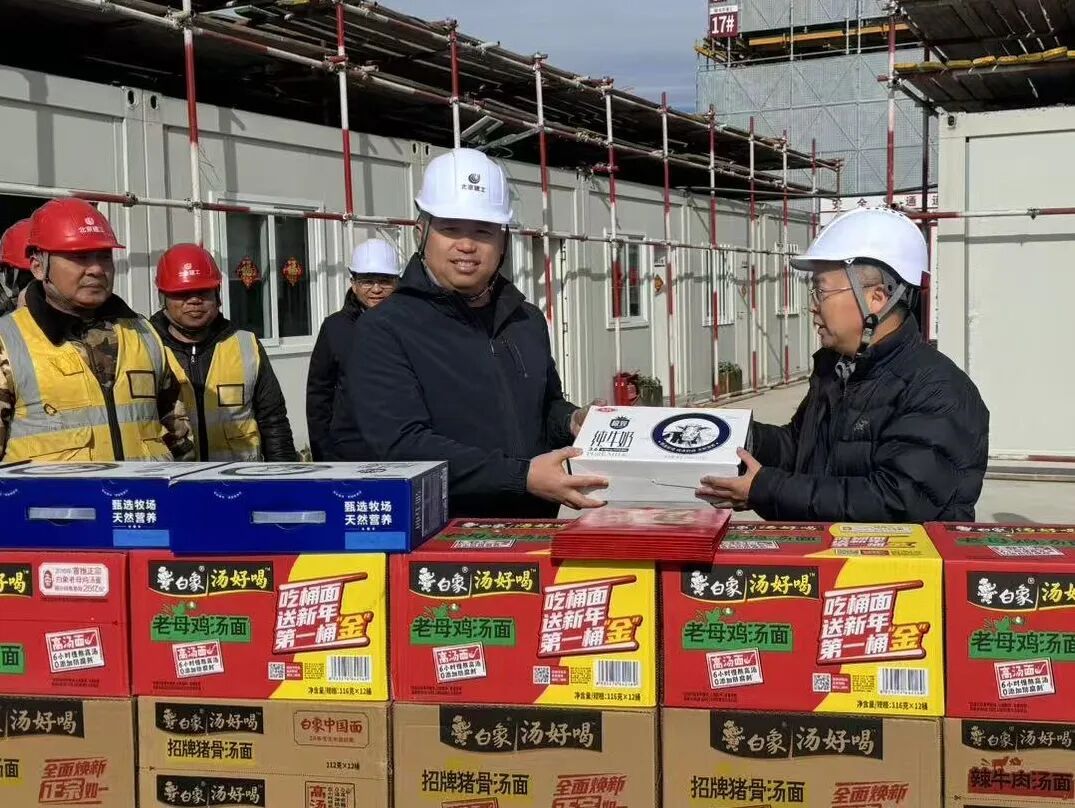 区住建委安全质量监督站副站长李广郁介绍:“今年春节期间,顺义区在施工地共有11个,近千名建设者留守岗位,就地过年。为了让工友们过个幸福年,我们准备了品类丰富的年货、慰问品等,温暖留顺建设者的心。同时要求企业提高伙食标准,组织开展多种形式的过年活动,确保工人在顺义过一个安心、暖心的春节。”