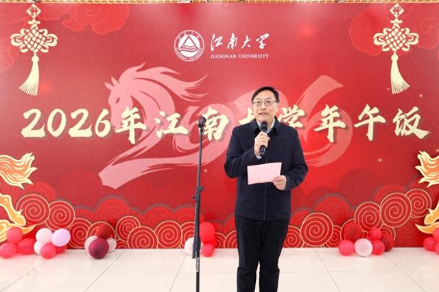 校党委书记吴正国代表学校党政,向全体留校师生致以新春的美好祝福,向长期关心支持学校发展的无锡市委、市政府表示衷心感谢。他回望2025年学校发展历程,指出全校师生凝心聚力、实干笃行,紧扣“教育强国 江南何为”时代命题,深入落实校第五次党代会精神,圆满收官“十四五”规划,交出了亮眼的发展答卷。2026年是农历丙午马年,吴正国为全体师生送上三个“马年祝愿”:愿同学们学业上一马当先,珍惜留校时光,度过平安充实的新春佳节;愿老师们工作上马到成功,深耕育人一线,在立德树人的征程上续写新篇;愿全体江南人奋进路上万马奔腾,永葆策马扬鞭的锐气,携手书写学校事业发展的崭新篇章。