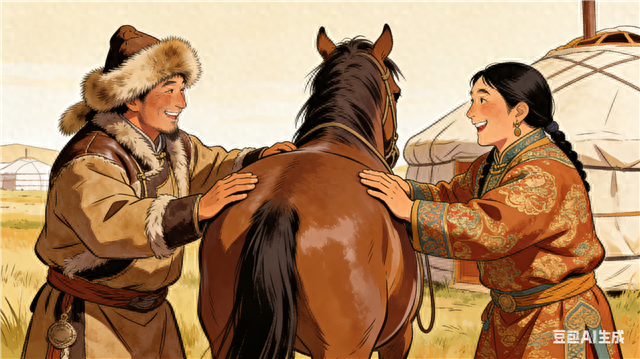 在元朝,蒙古族作为马背上的民族,视骏马为最珍贵的伙伴。平日牵马相遇,人们会很自然地拍拍对方马的屁股,仔细端详,并随口夸赞一句“好马!好马!”。