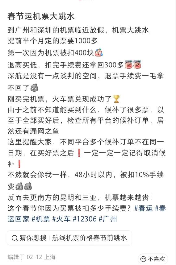 而在西安上班的翟女士就在14日购买了16日大年三十前往广州的机票,虽然是夜间航班,但是花费不到500元。