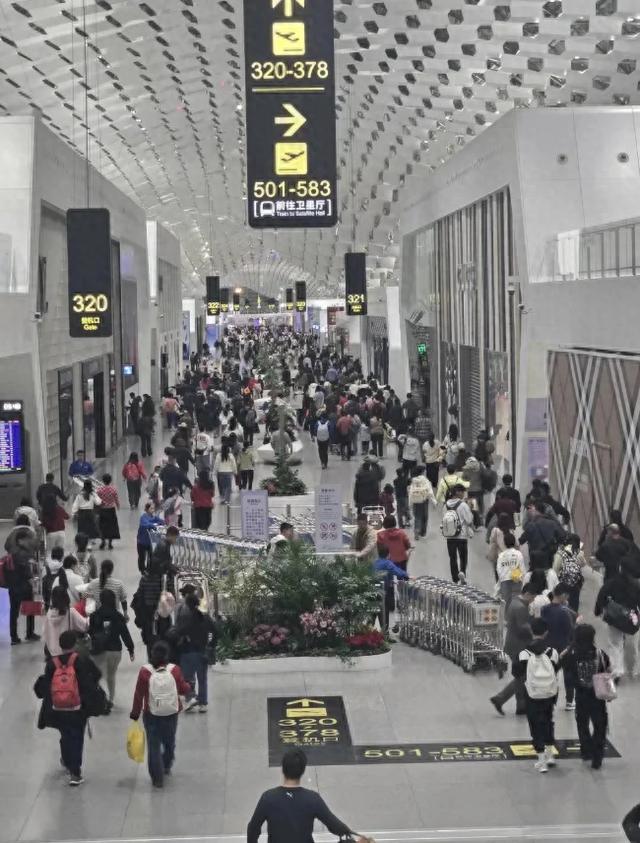 2月18日,有网友晒出18日凌晨5点半深圳机场人头攒动的画面。