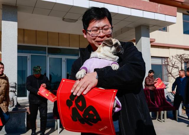 《”福“到啦》:2025年1月28日,除夕,“全家全村幸福照 摄影进村过大年”,滨州摄协走进河套崔村开展摄影志愿服务活动,一村民拍完合影,领上“福”,抱着爱宠,回家的路上,连风都裹挟着年味。