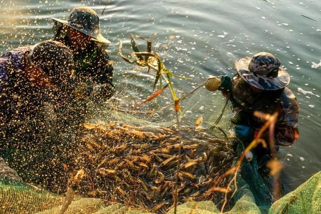 《对虾养殖喜获丰收》:2025年9月25日,在乔庄镇星罗棋布的虾池里,村民们沐着晚霞正在打捞丰收硕果,“一只虾”让昔日的盐碱地变成了“鱼米之乡”。
