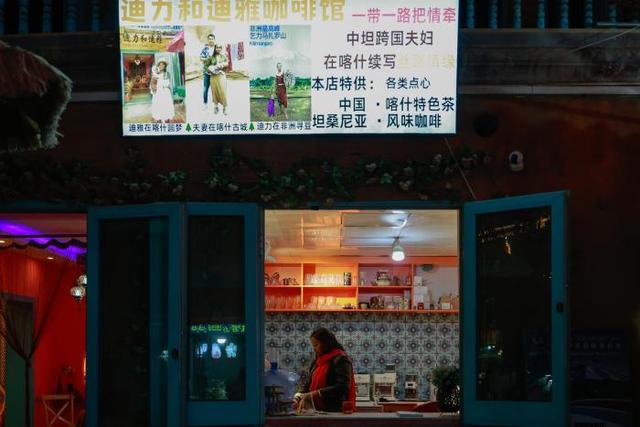 《丝路灯火里的咖啡馆》:2025年10月19日,咖啡馆的夜色门头,异域风情与烟火日常在喀什的夜里相融。