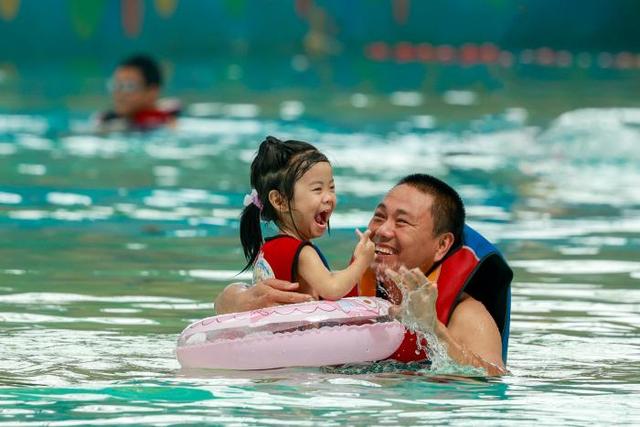 《水花里的亲子时光》:2025年8月26日,鑫诚田园的泳池里,父女的笑声,父亲的托举,是独属于这个夏季的清凉浪漫。