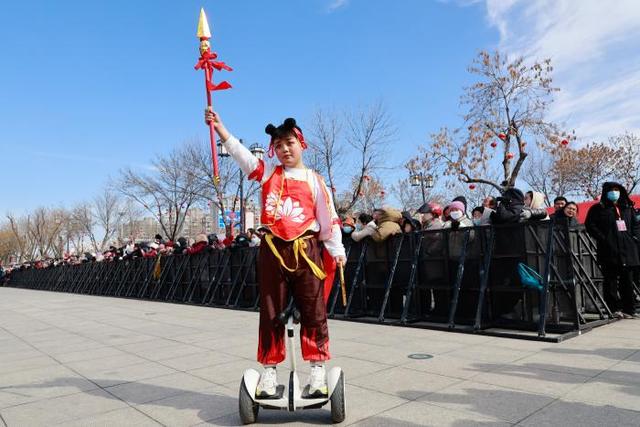 《小哪吒闹新春》:2025年2月12日,惠民县孙武广场上,各个社区街道的秧歌队纷纷亮相,这位脚踩风火轮的哪吒少年格外亮眼。