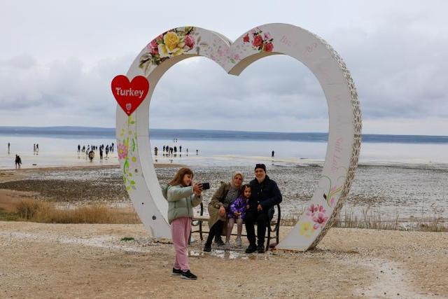 《盐湖一帧》:2025年4月4日,在土耳其图兹盐湖,一家人合影留念,把平凡的瞬间变成风景也是旅行的意义。