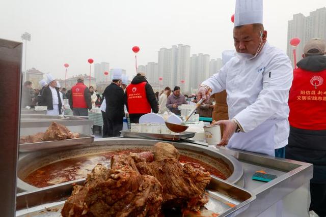《阳信大锅牛肉里的烟火气》:“牛”气冲天·山东牛肉美食争霸赛暨滨州市冬季黄河大集在阳信举办,12月19日下午在阳信县工人文化宫体育馆举办了开幕式,在场馆西北角,市民可以品尝六家企业现场熬制的免费牛肉汤——“牛县第一汤”,体验“牛跃犇腾”的温暖滋味。