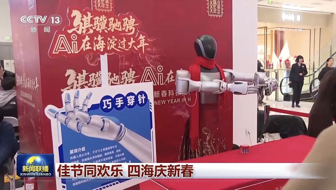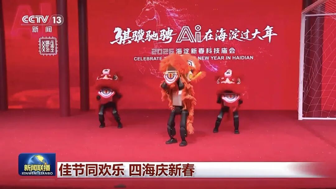 在北京海淀五棵松的科技庙会现场,有热闹的表演区域,舞动狮头的是机器人,机器人通过舞狮展示传统文化的“精气神”,将传统年俗与前沿科技结合。这款机器人前不久在米兰冬奥会开幕前进行过展演,在今天的科技庙会上也要秀秀脚法,展示球技。