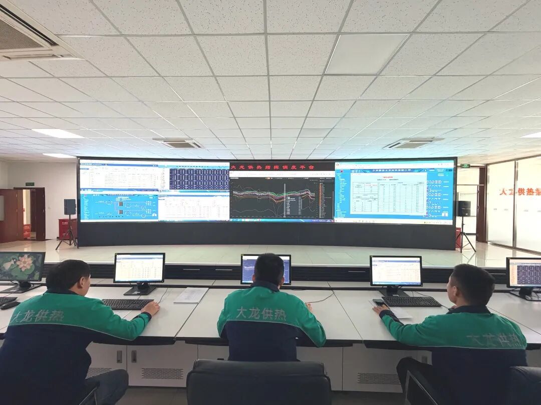大龙供热公司指挥调度中心内,工作人员正全神贯注地盯着屏幕,密切观察锅炉压力、管网流量等核心数据,根据室外气温变化动态调整供水温度。