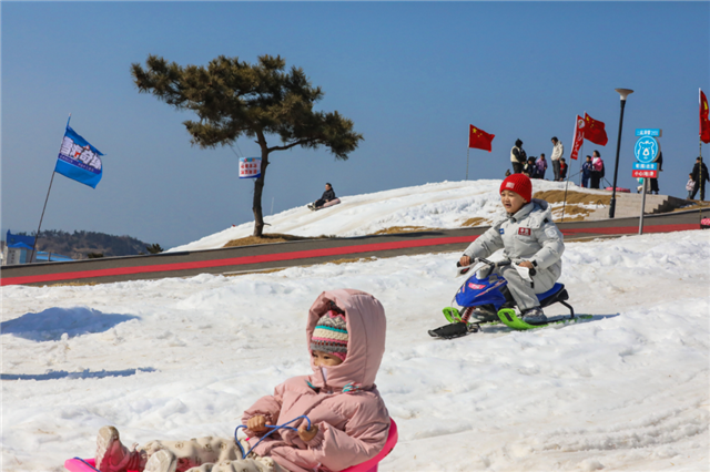 “第一次见到海边的冰雪乐园,一边玩雪一边看海,景色绝了,项目也多,孩子玩得特别开心,年味和浪漫都拉满了!”来自江苏的游客张女士对此次威海之行赞不绝口。