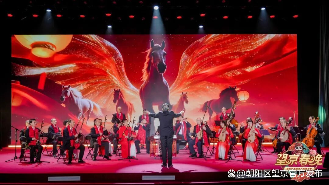 望京民乐团27位演奏家激情演绎民乐《赛马》,以欢腾热烈的旋律呼应农历马年,象征望京发展如骏马奔腾、活力不息。
