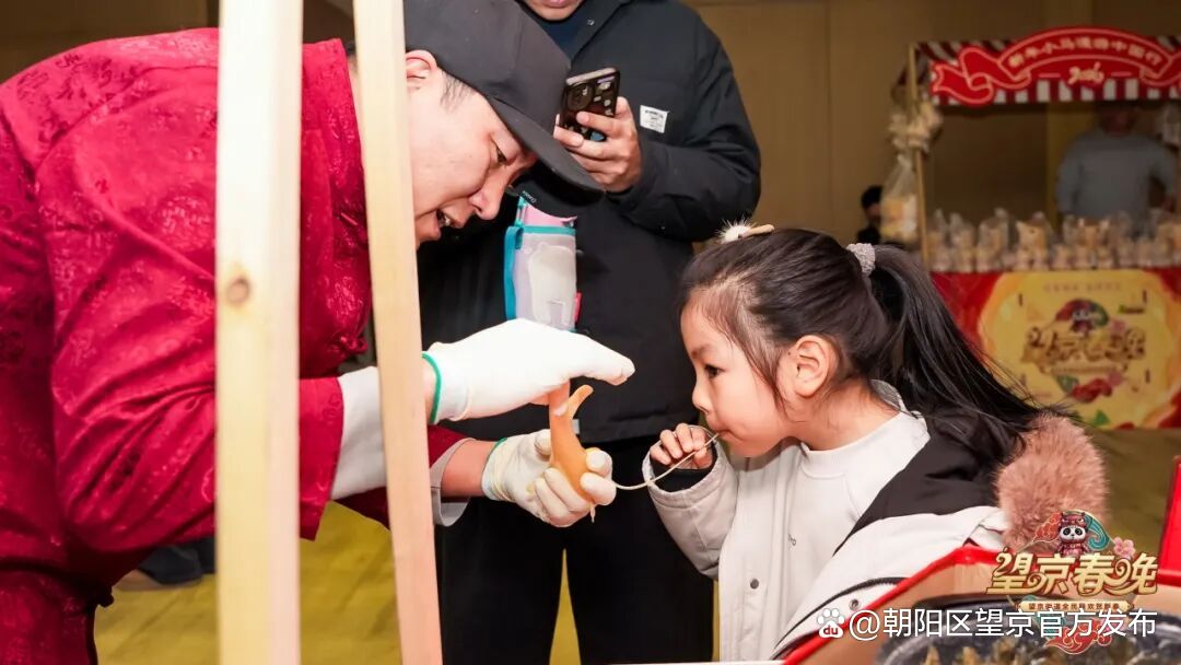 值得一提的是,与主会场同步开设的“春彩望京”新春市集热闹非凡,汇聚了中国邮政、同仁堂健康、三元乳业等20家优质企业,不仅有传统年货、手工艺品,还有企业展示区和互动体验区,成为居民们感受年味、购物消费的热门打卡点。现场可以体验捏面人、糖画等传统民俗,也可以参与科技企业设置的人工智能互动等现代项目,满足群众多样化的文化需求,激发消费新活力。