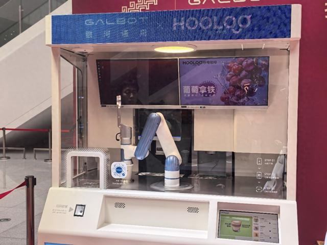 最让旅客惊喜的,是它带来的“无人零售”新体验。在市集现场,工作人员面前的iPad成为旅客与机器人互动的“魔法窗口”。旅客只需轻点屏幕,选择心仪的咖啡或饮料并完成支付,Galbot便会精准转身,从后方的货架或咖啡机区域识别并抓取对应的饮品,随后稳稳地将其递到旅客手中。