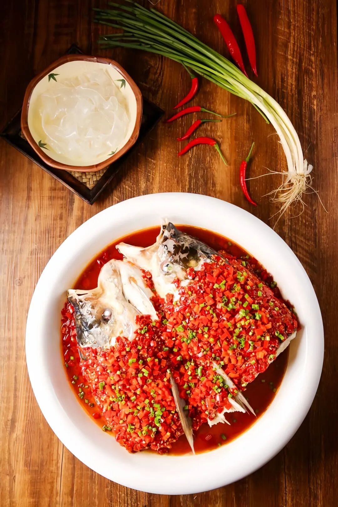 该店负责人介绍,这道茶油剁椒鱼头之所以好吃,和精选的食材不无关系。先说这剁椒,选用湖南本地特产辣椒,由店里专人制作,剁椒的辣度、咸度及含糖、含水量,都精心控制,容不得半点疏忽。再说这鱼头,取自水库活鱼,个大肥美,肉质细腻,在烹饪的过程中,要用上两遍湖南山林中特产的茶树油,使得口感更加鲜嫩滑口。最后加入由店家经过数小时熬制的高汤秘制而成的“豉汁”,如此美味方可大功告成。