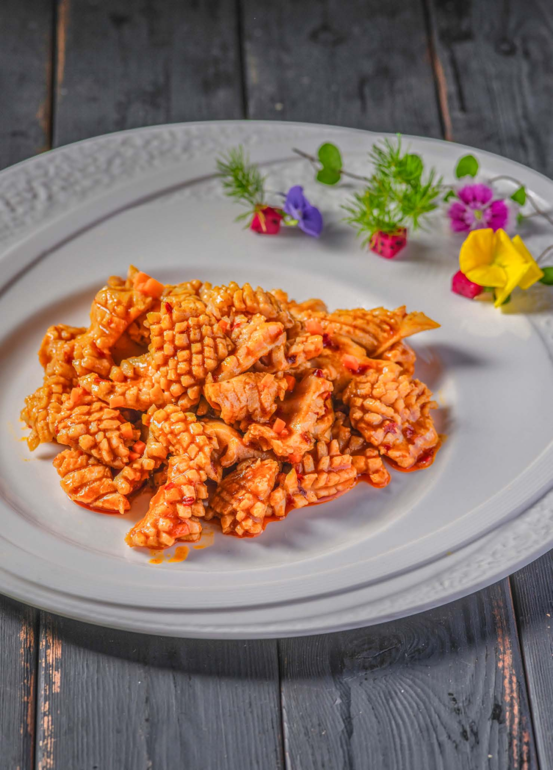 寻味曲园酒楼,最令人食指大动的当数这道招牌菜——被称为“第三代剁椒鱼头”的曲园茶油剁椒鱼头了。鱼头都选用当天一早到店的鲜鱼头,曲园酒楼也起了个新年拔得头筹,一马当先(鲜)的菜名。翠绿的香葱衬着红火的剁椒,色泽红亮、汁香浓郁,让人忍不住大快朵颐。举箸入口间,鱼肉的鲜嫩、剁椒的微辣、豉汁的甜香通通在唇齿间交融,瞬间便将挑剔的味蕾俘获。