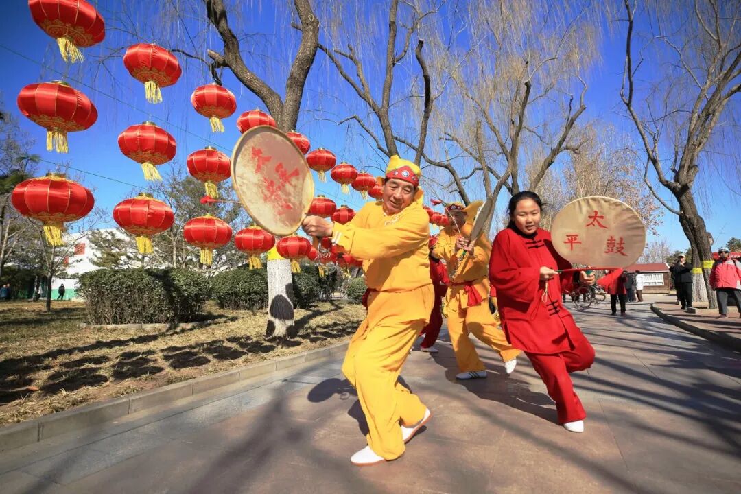 初一,京西太平鼓率先敲响新春序曲,激昂的鼓点传递着新年的喜悦。