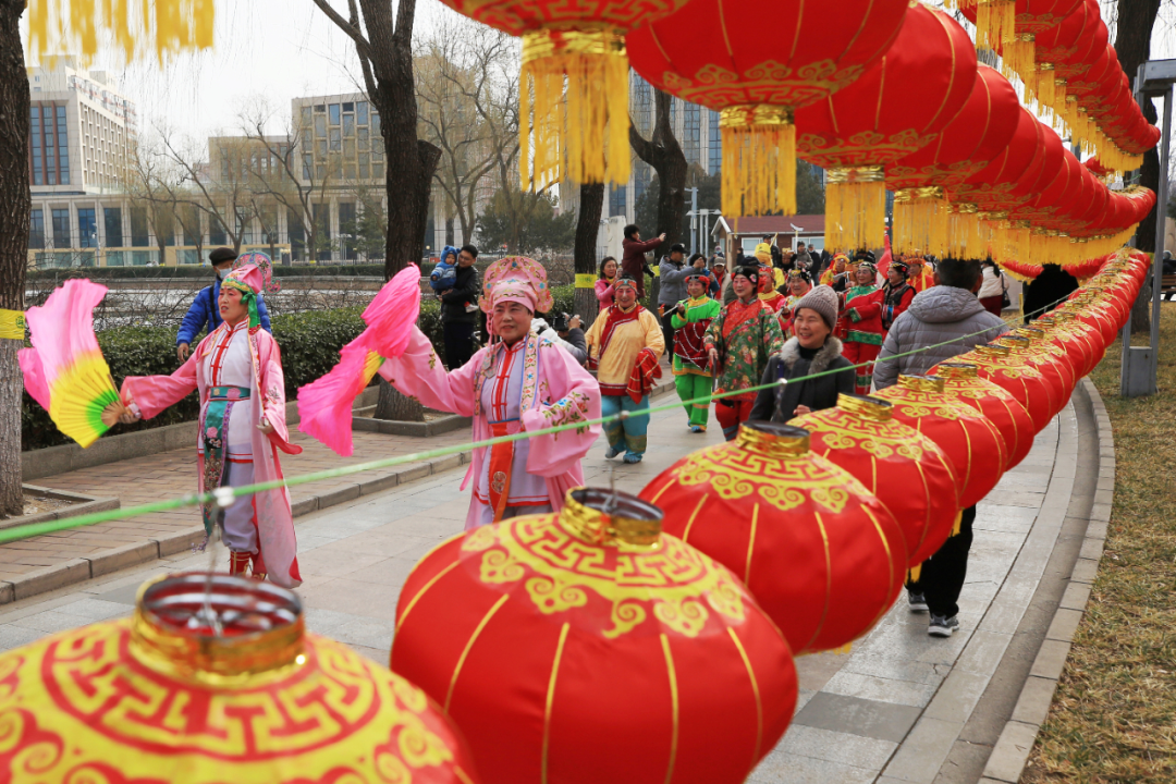 初五,扭秧歌热闹登场,喜迎祥福,现场还设置新年习俗知识互动,让市民解锁传统年俗内涵。