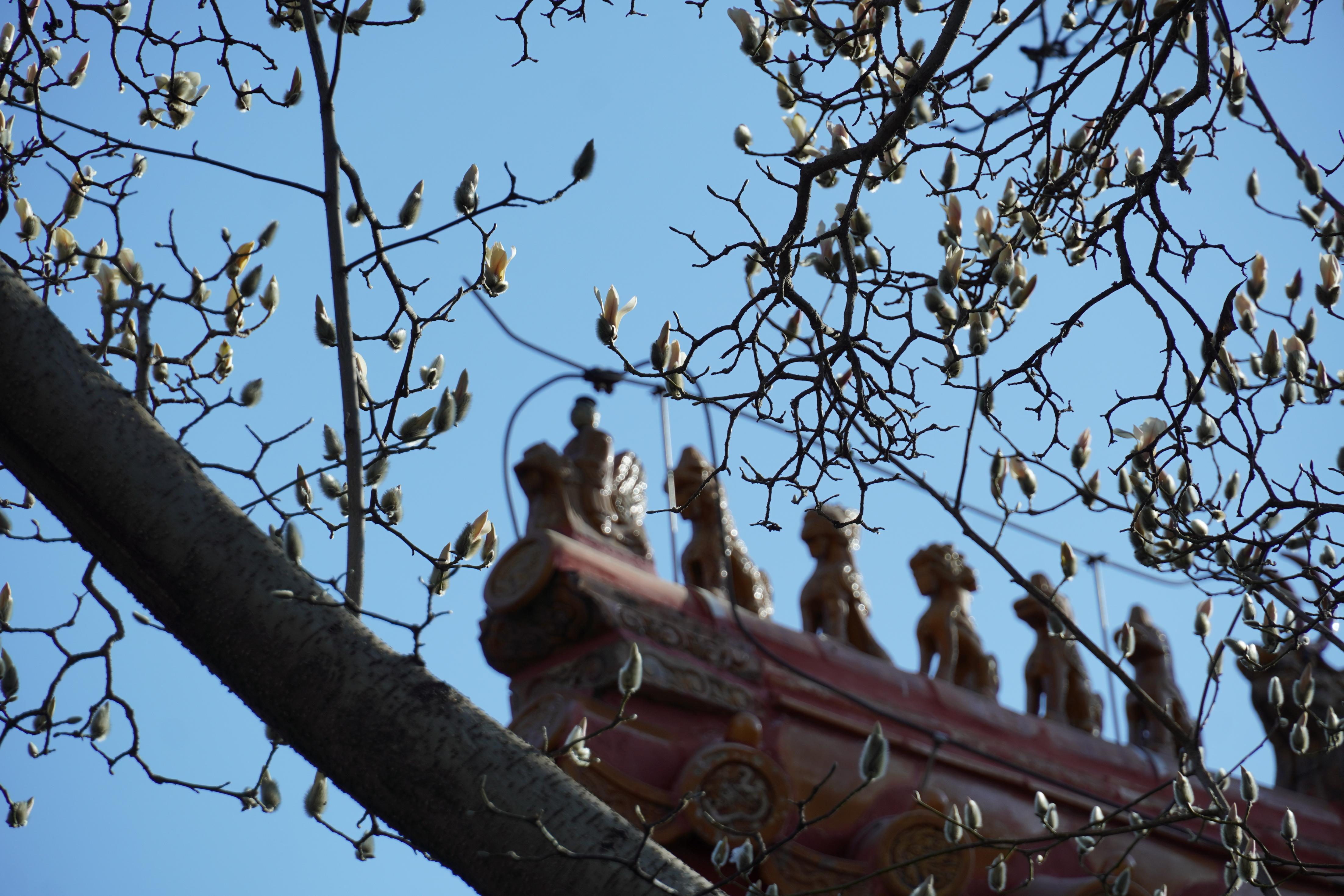 春意最先从枝头透出。西门内北侧,望春玉兰正值初绽期,花朵素雅,点缀枝头;西区科普园入口处,蜡梅正值盛放,金黄小花缀满枝条,为早春游园增添一份意趣。