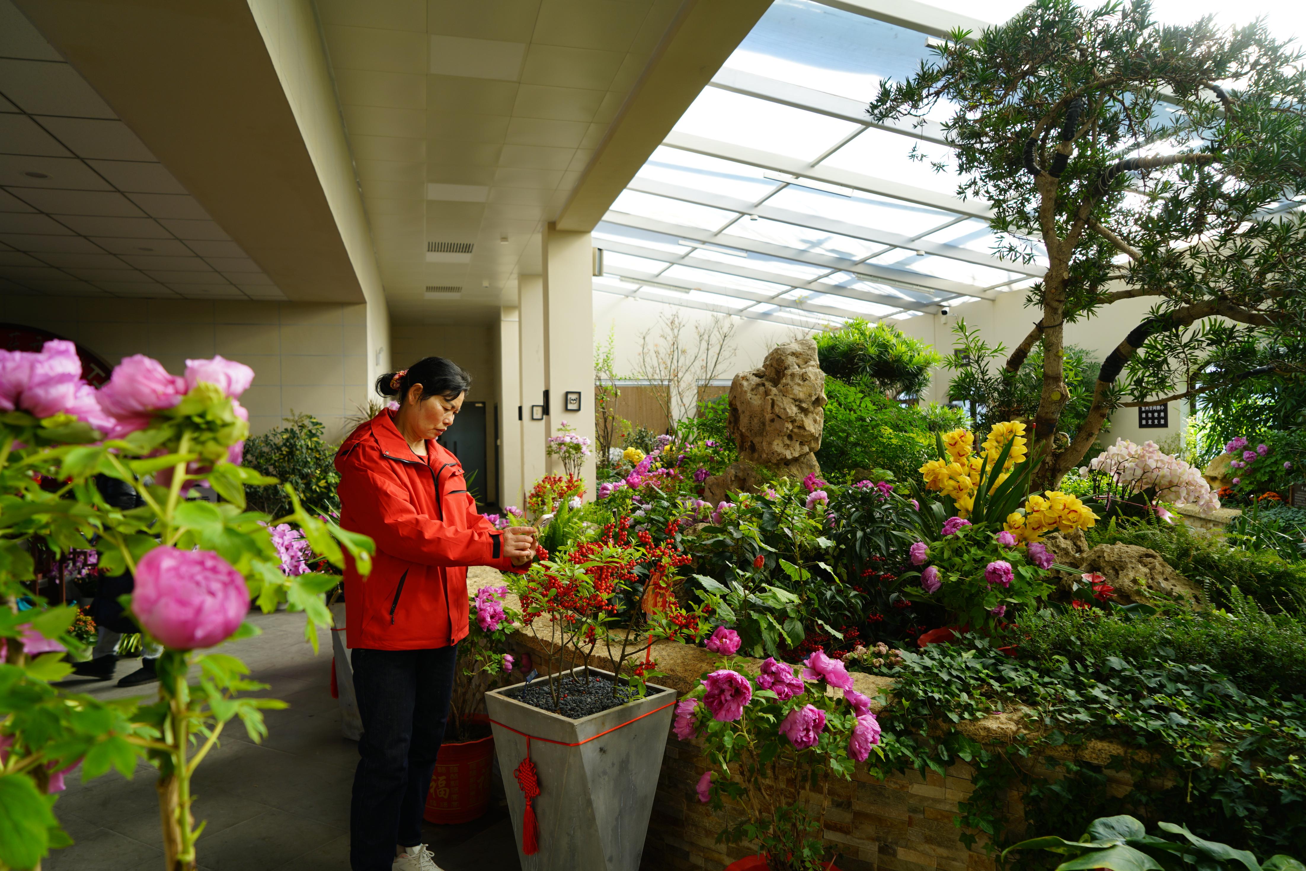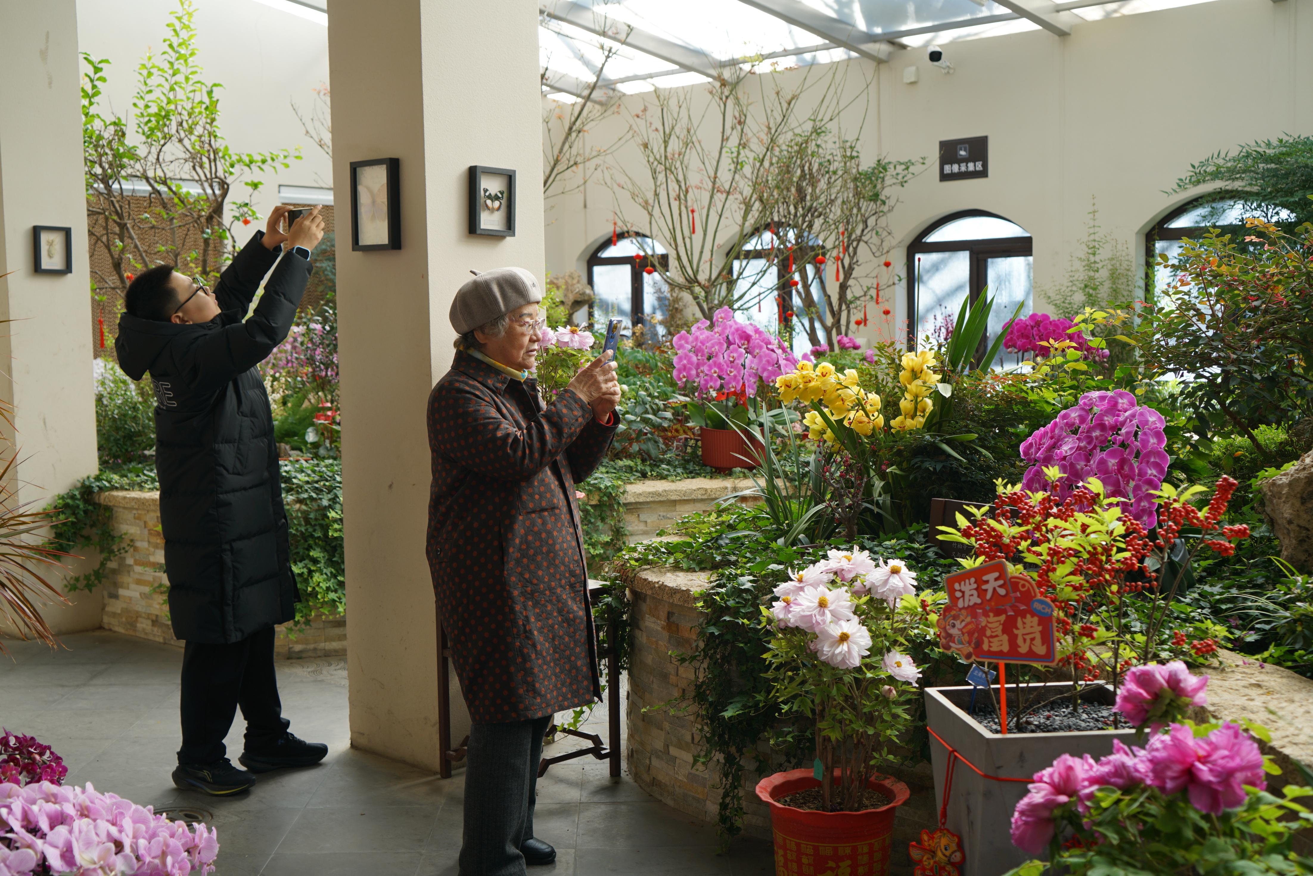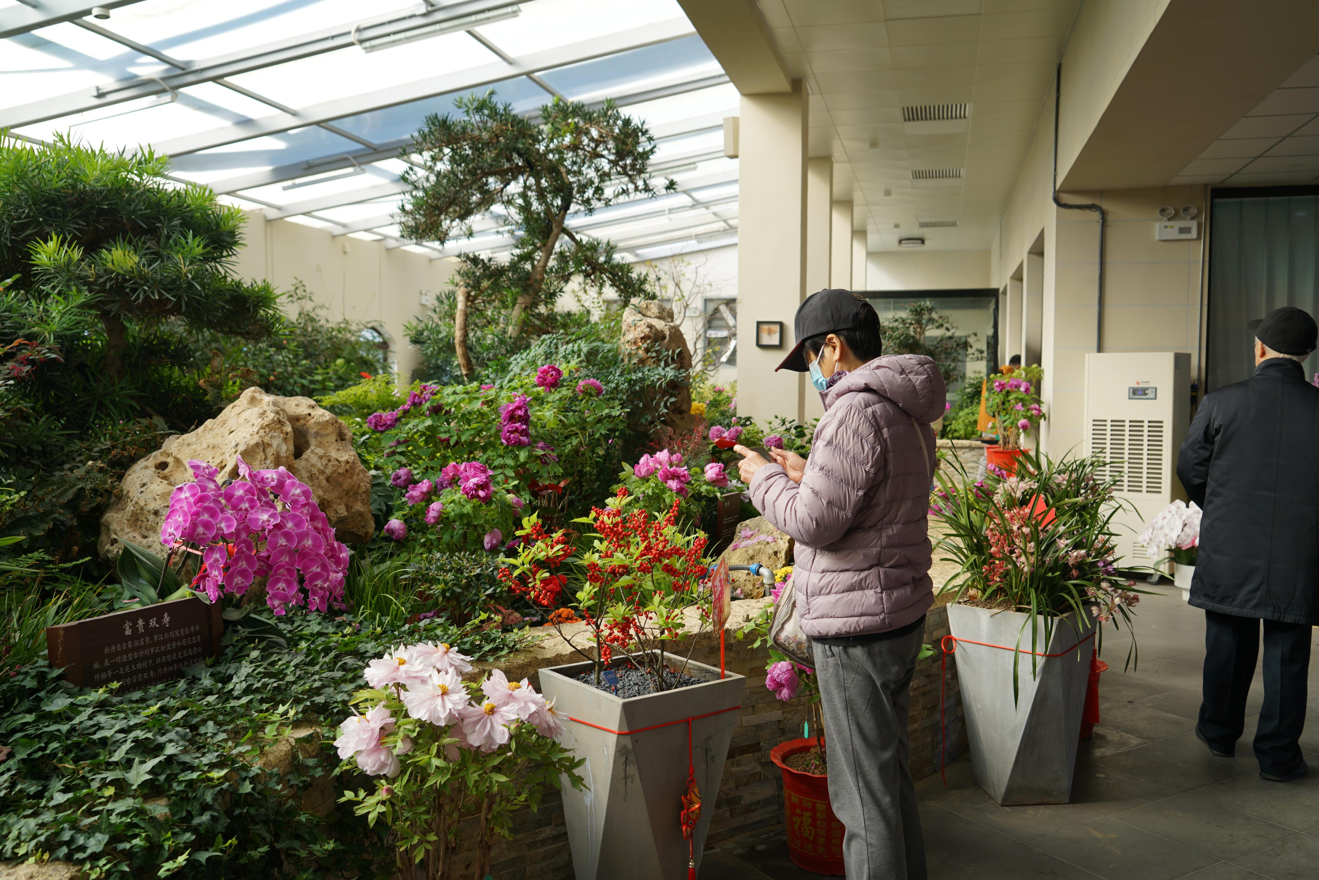 如果还想感受更浓郁的春色,可以移步科普小屋。反季节牡丹仍在绽放,搭配清雅的国兰、灵动的蝴蝶兰、典雅的山茶等时令花卉,齐聚一堂,满室春意盎然。