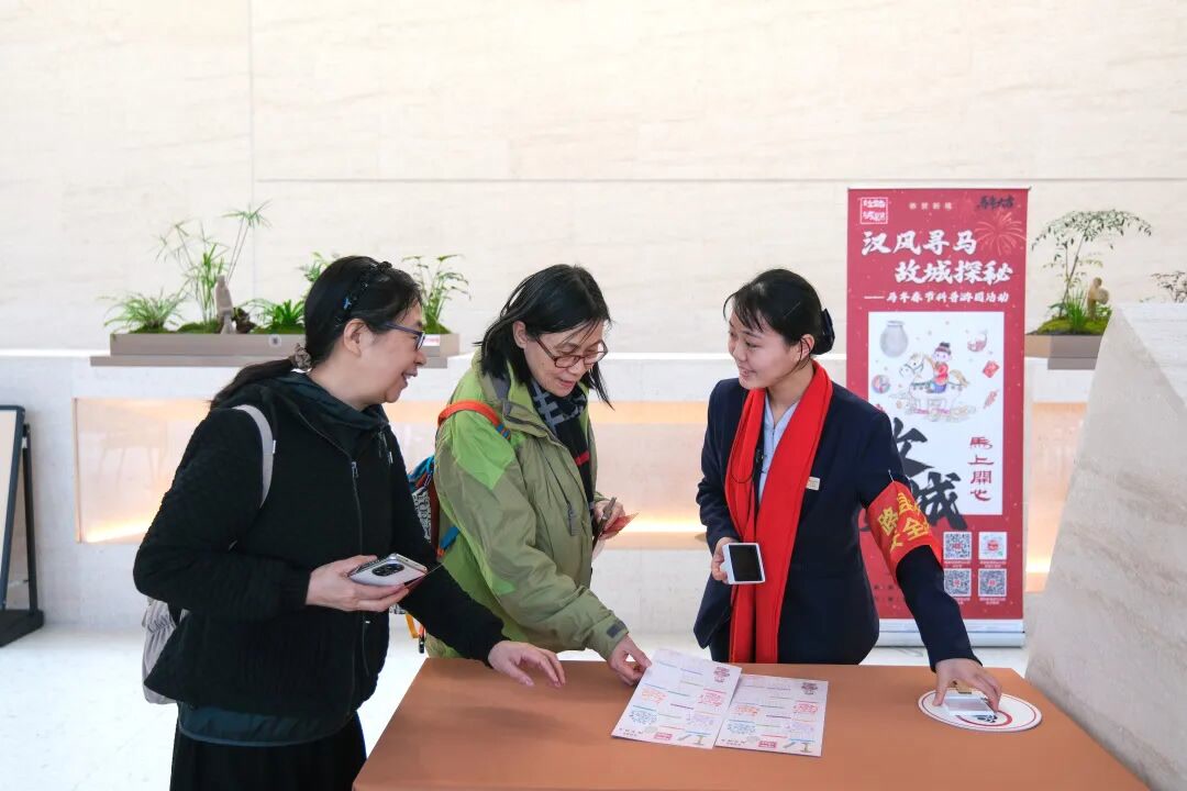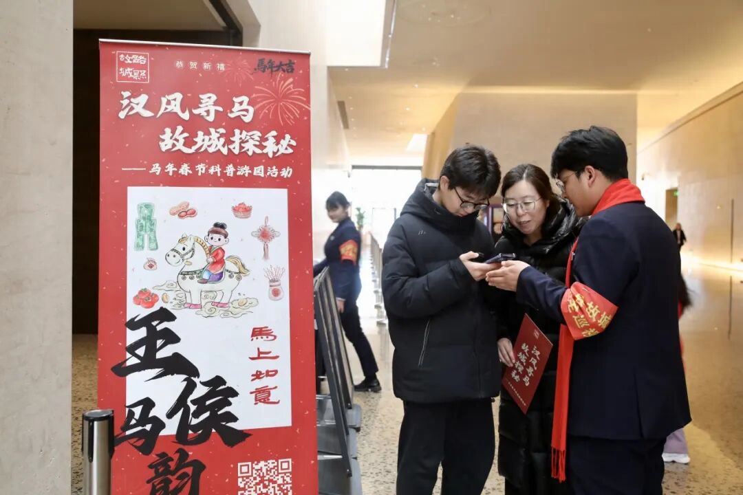 每日限量500张的“马年春节特色纪念票”,成为收藏爱好者的热门选择。“汉风寻马 故城探秘”打卡集章活动人气爆棚,串联博物馆内五个核心点位,打造专属新春寻马游园路线。游客循着马迹打卡集章,集齐印章兑换“马年限定窗花”,在趣味互动中解锁点位文化内涵,让新春游园更具仪式感与参与感。