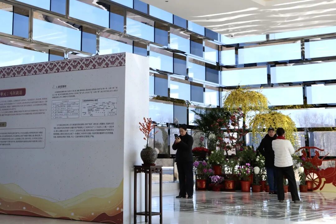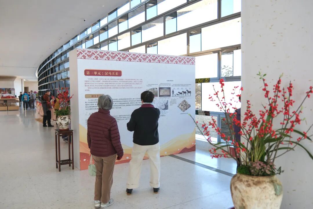 “骏驭九州——汉代马文化特展”全方位呈现汉代选马、养马、用马的文化习俗,系统解读汉代马文化的历史内涵与艺术价值。“岁朝清贡 新岁芳辰”新春主题盆栽与众多年宵花以雅致景致点缀节日氛围,成为游客拍照打卡留念的热门点位,古韵与春意相映成趣。