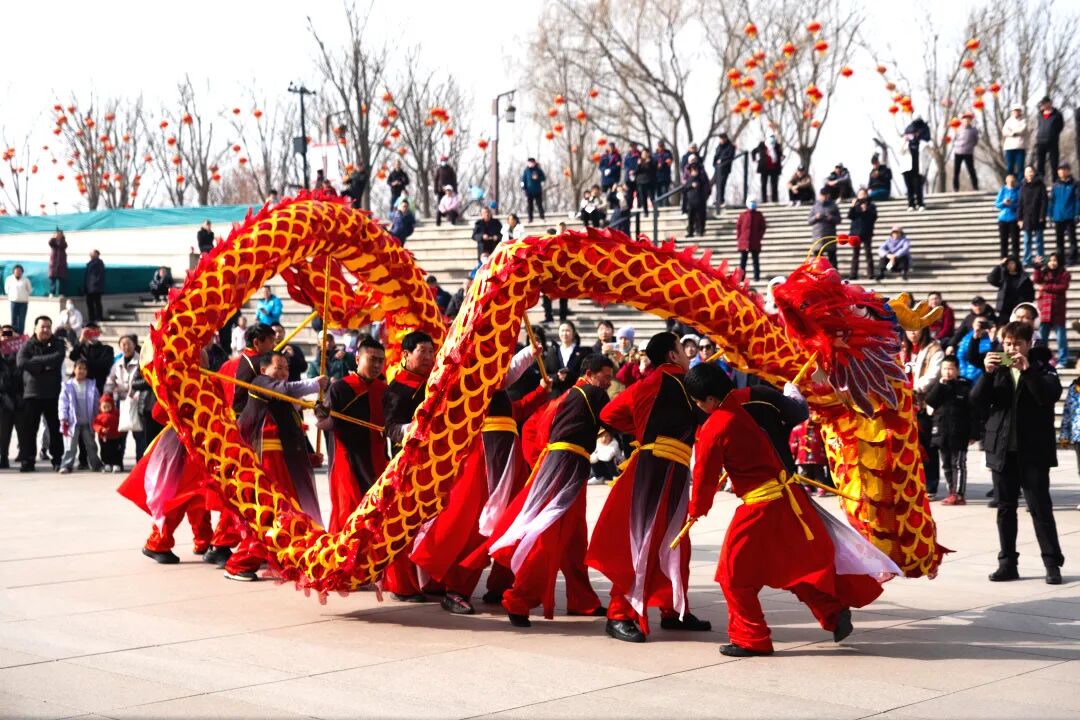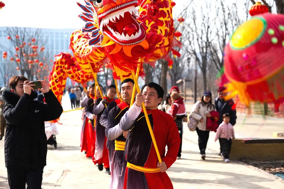 大年初一、初五,喜庆热闹的舞龙舞狮展演在公园中精彩上演。祥龙瑞狮穿梭在公园南园中,腾跃翻转、气势昂扬,传递新春祝福,吸引大批游客驻足观赏、拍照留念,为故城新春增添浓浓喜庆氛围。
