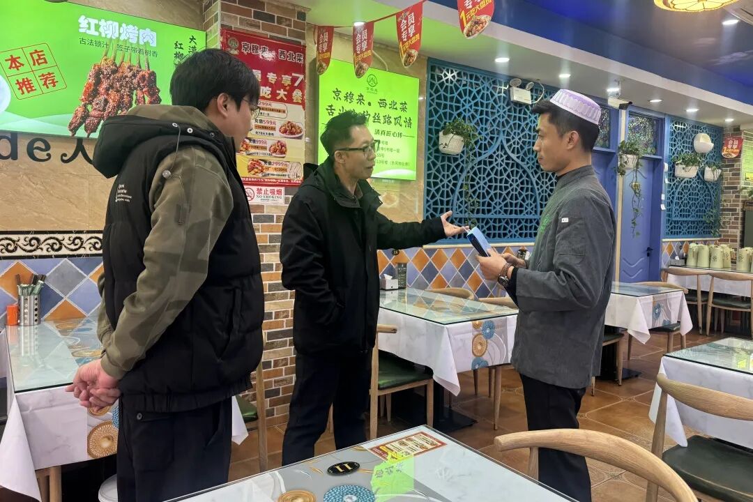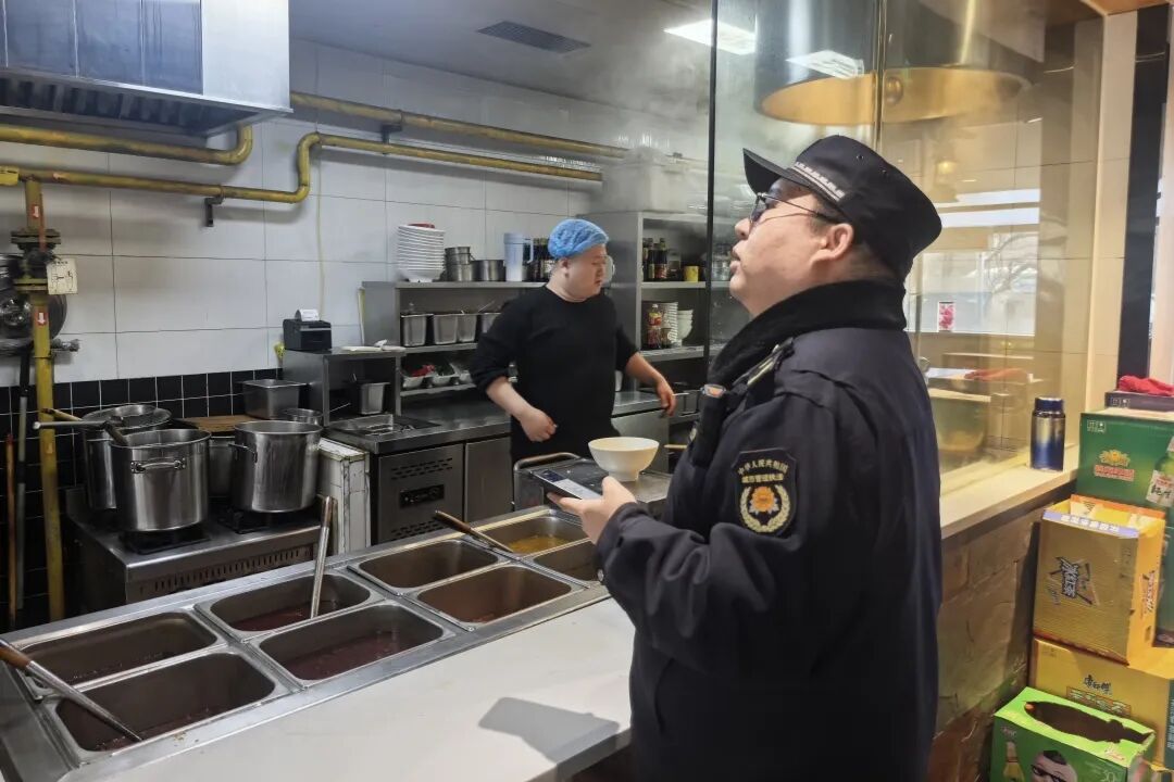 在南路社区周边沿街商铺、餐饮门店,对安全出口、疏散通道是否设置合理、通畅,是否有违规使用明火等情况进行了细致地排查。