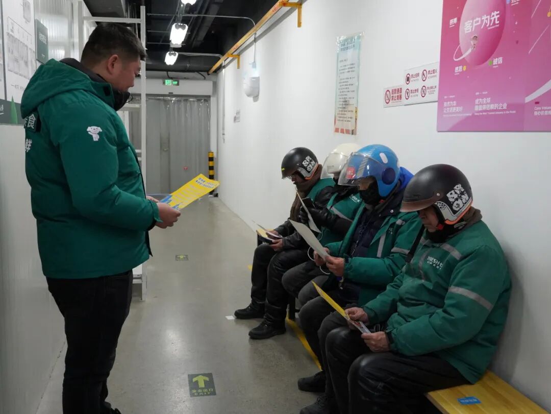 位于天桥街道的七鲜超市太平街1号仓店,党龄10余年的站长王占付是骑手们口中的“付哥”。他坚持“晨会三必讲”:头盔佩戴必检、车辆自检必问、天气风险必提;推行“老带新安全搭档制”,让资深骑手与新人结对完成首周10单“安全跟单”;更将小哥休息区域改造为“暖心驿站”,提供免费胎压检测仪、头盔消毒柜、防滑链借用站。“以前觉得戴头盔是应付检查,现在明白——那是给家人多留一个明天。”一位曾因未戴头盔被系统抓拍罚款的骑手,在支部主题党日分享时眼眶泛红。