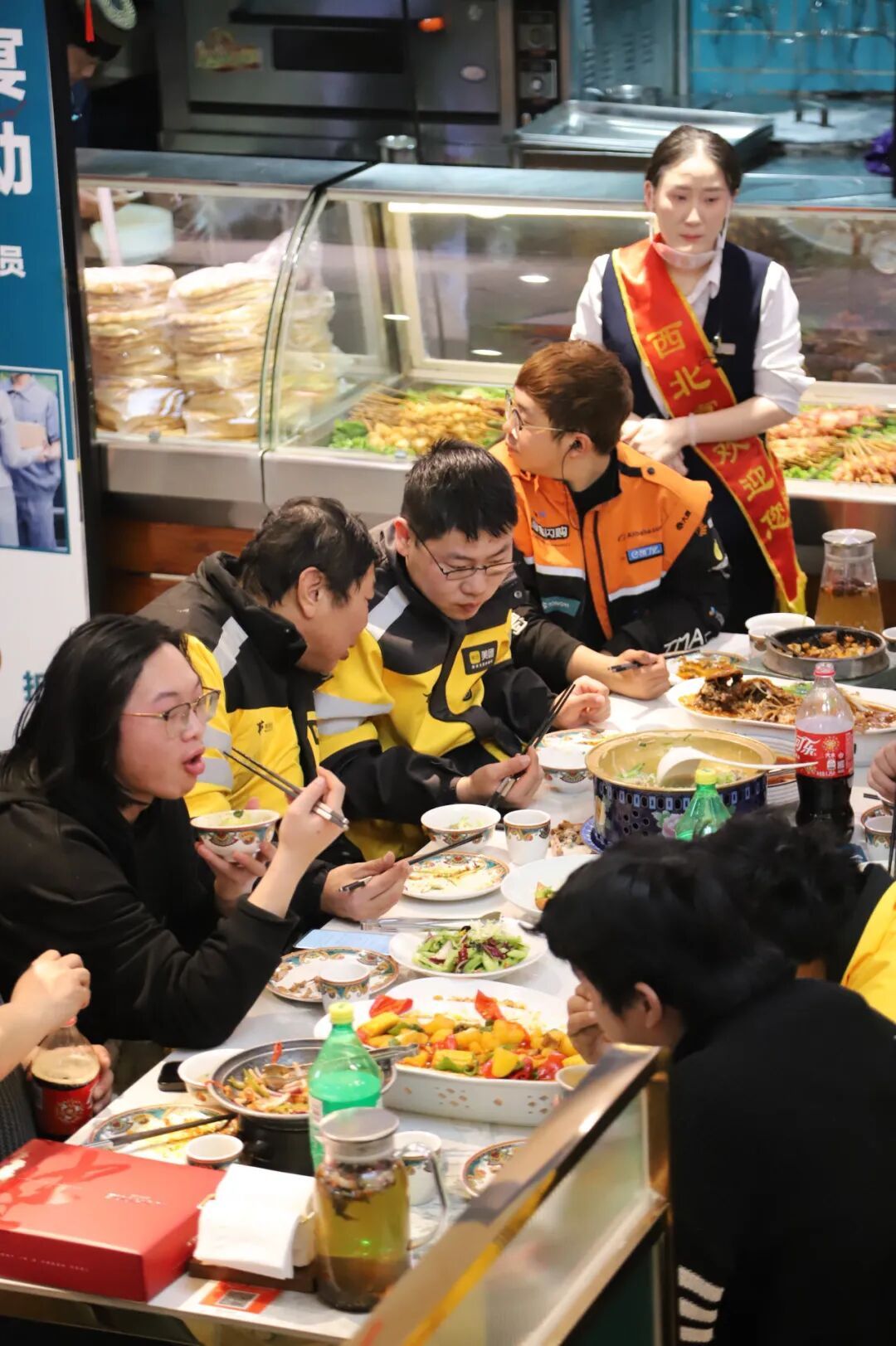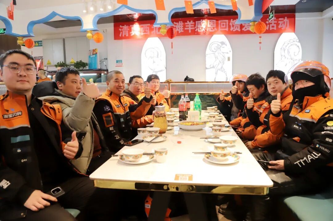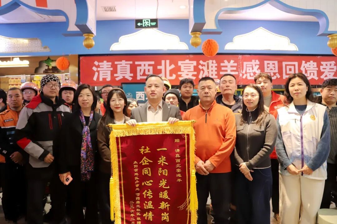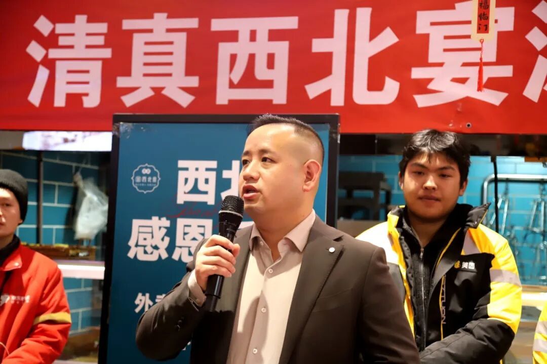 清真西北宴滩羊餐厅经理马小平在现场正式宣布:2026年全年全时段,环卫工人、快递员、外卖员等户外工作者进店用餐,凭工作证件即可享受全场79折优惠,无时段限制、无菜品限制,让户外工作者随时能吃上热乎、实惠的西北风味大餐。