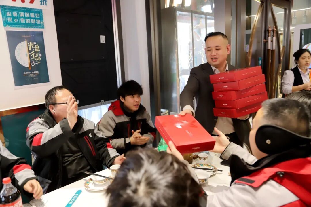 “平时忙着配送,很少有时间和同行坐下来吃顿热饭,这顿年夜饭不仅菜硬,还能和大家热热闹闹团圆,太贴心了。”外卖员小李一边啃着羊杂,一边感慨道,“没想到餐厅会主动想着我们,还有全年79折福利,以后忙完终于有地方吃口好的了。”