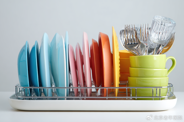 例如:用深蓝色盘子装米饭、红色碗盛汤