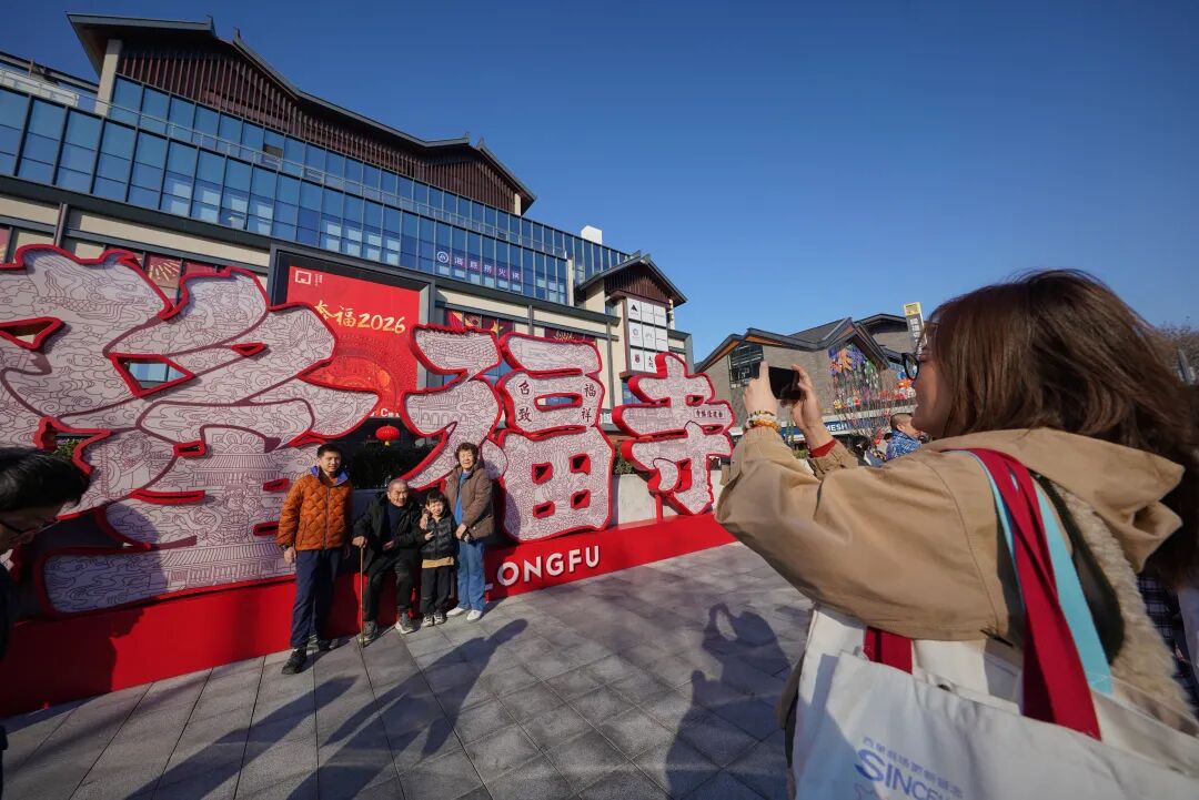 春节假期,隆福寺街区人头攒动、喜气洋洋。步入街区,新春市集热闹非凡,各类摊位依次排开,文创好物、特色美食琳琅满目。而街区内多家老字号与特色实体商户春节期间也照常营业,整个街区格外热闹,成为市民游客打卡新春、品味京味年俗的热门之地。春节假期,隆福寺商圈累计接待客流近85万人次。