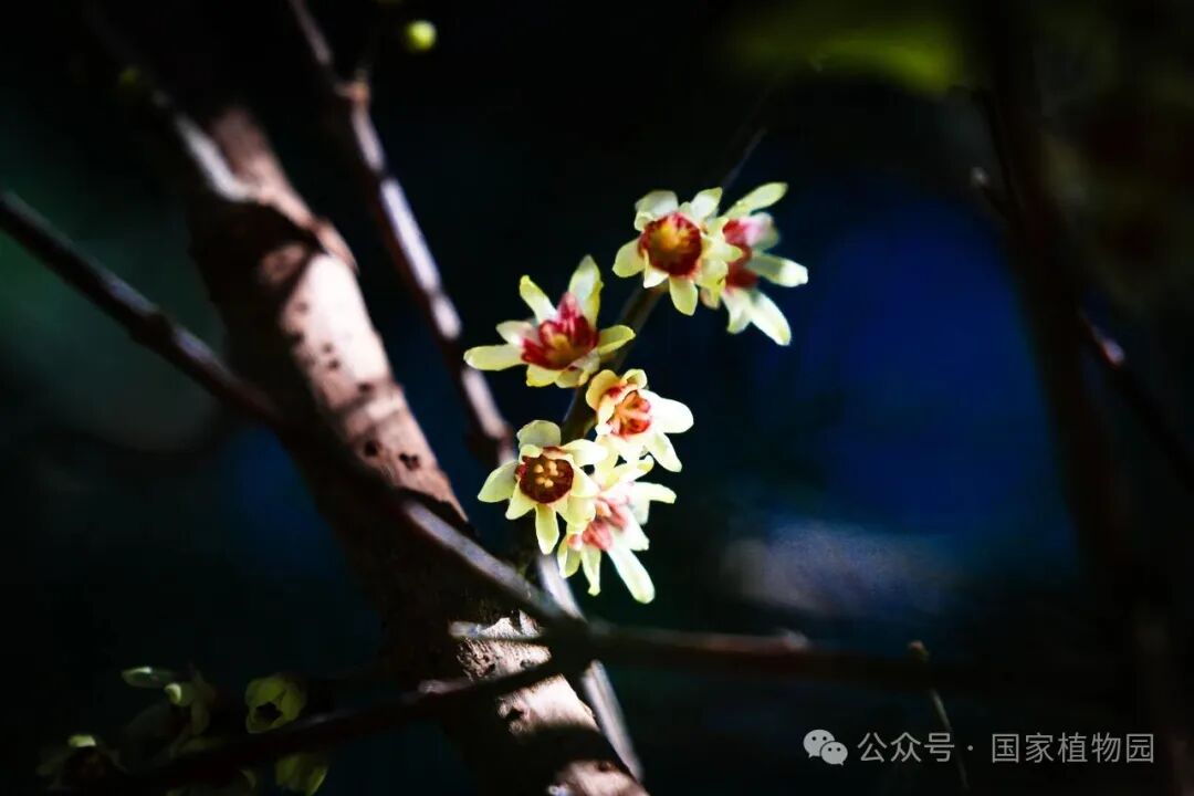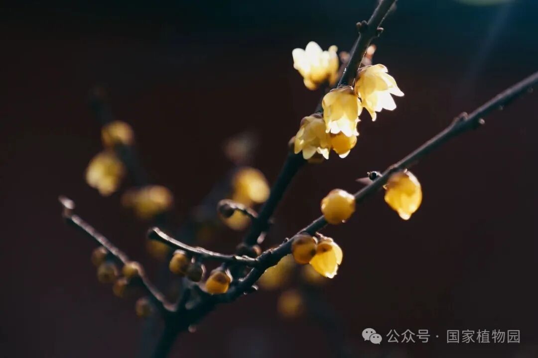 此外,还有晚花蜡梅,‘素心’、‘磬口’、‘狗牙’、‘虎蹄’等多个品种,花期通常为1月底至3月中旬左右。目前晚花蜡梅处于盛花期。