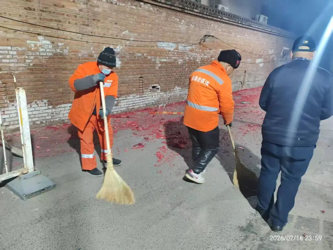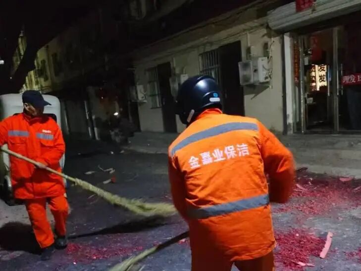 金嘉业保洁公司组织保洁人员坚守一线,重点对主次干道、背街小巷、居民小区等区域开展烟花爆竹残留物巡回保洁,及时消除易燃安全隐患,以实干守护洁净家园。