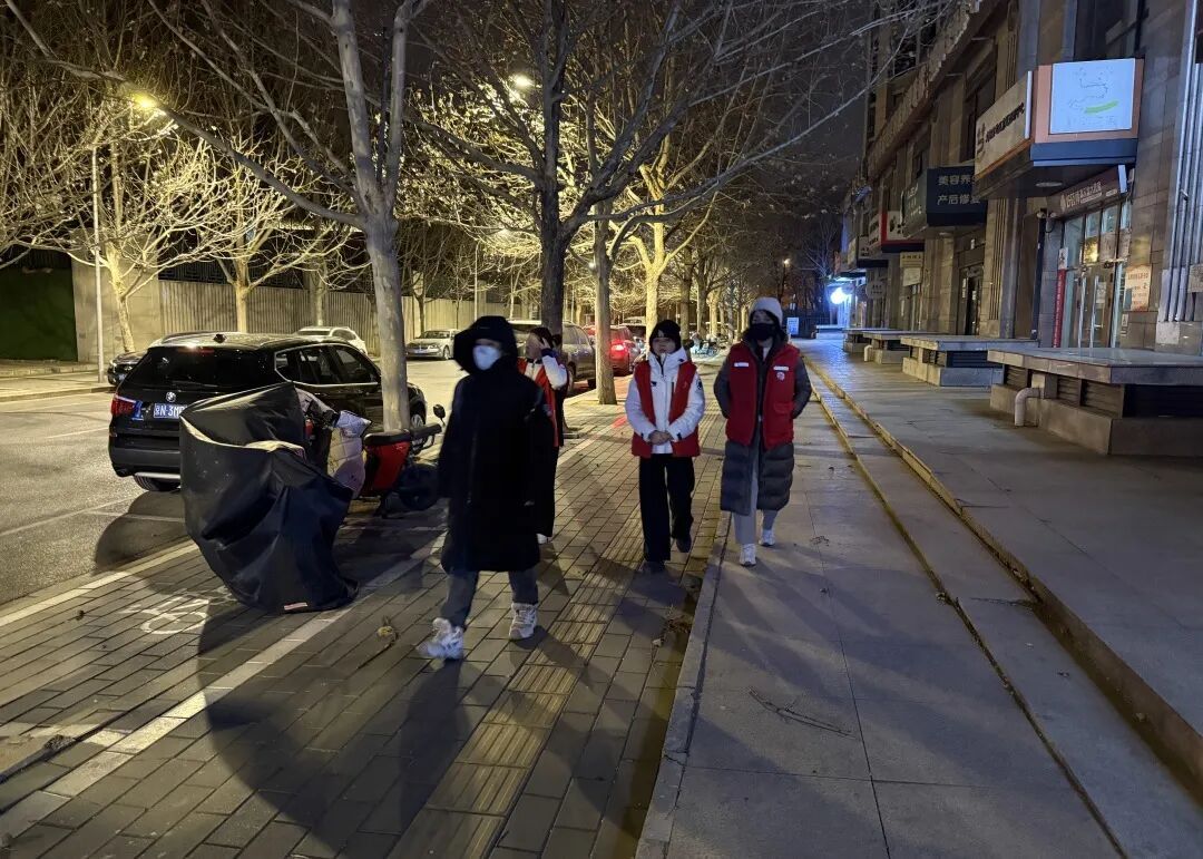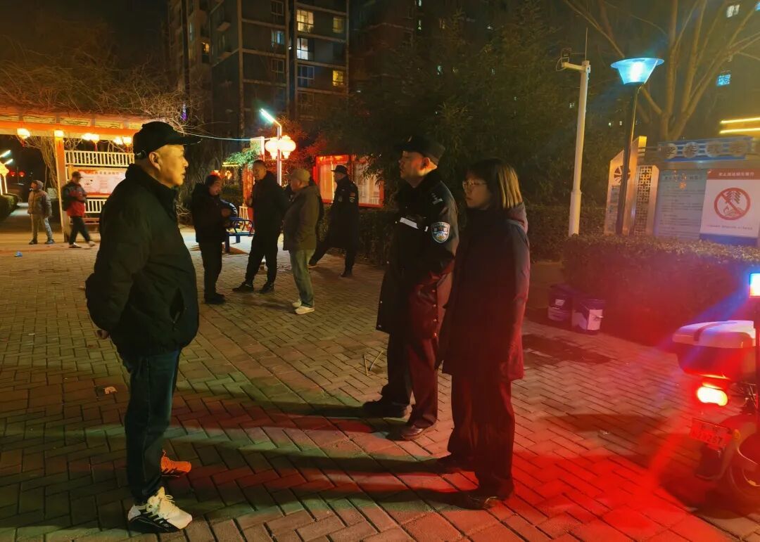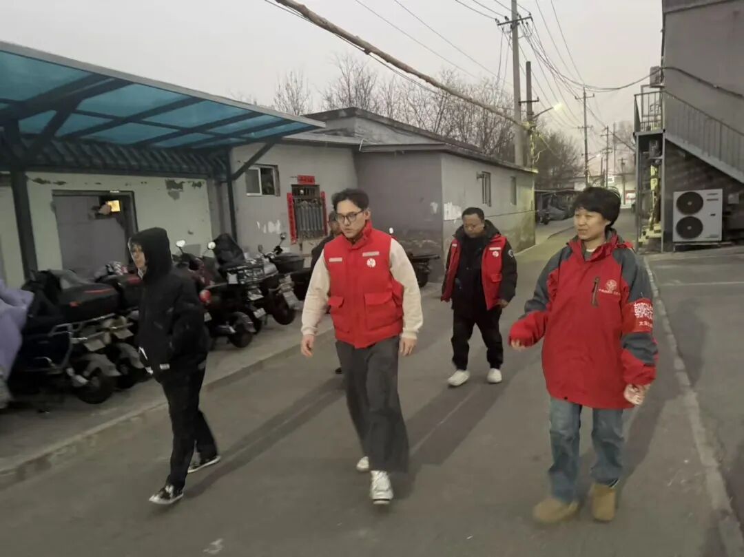 大年初五夜,北京大风呼啸。芍药居六社区、太阳宫社区、夏家园社区、夏家园二社区、惠忠庵社区的社工穿梭于街巷之间,重点排查辖区安全点位,检查消防、户外设施、高空坠物等风险隐患,他们迎风而行,将倒伏的电动自行车一一归位,仔细排查各类安全隐患,及时劝阻违规燃放行为,从地面到高空,不留一处隐患,用坚守筑牢节日夜晚的安全防线。