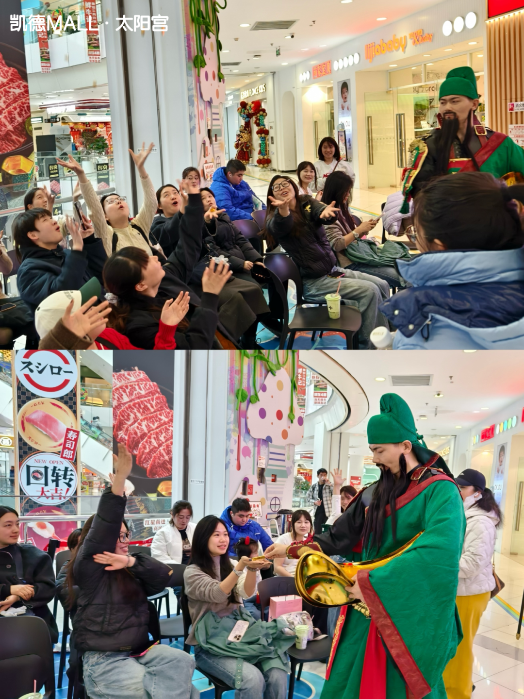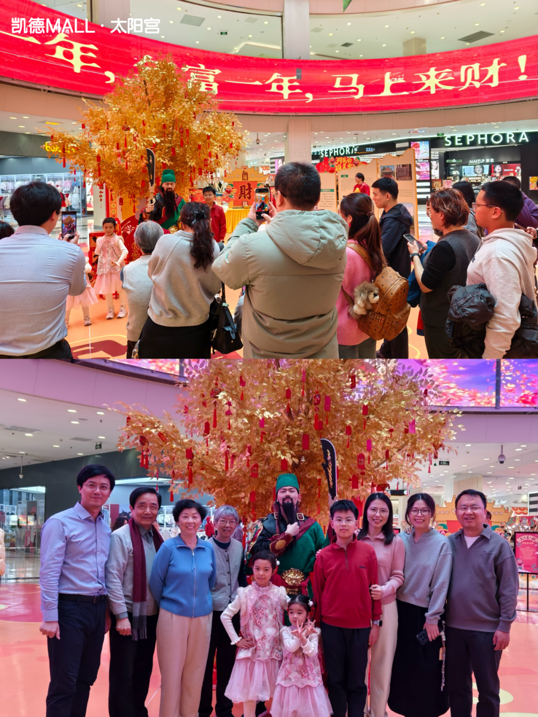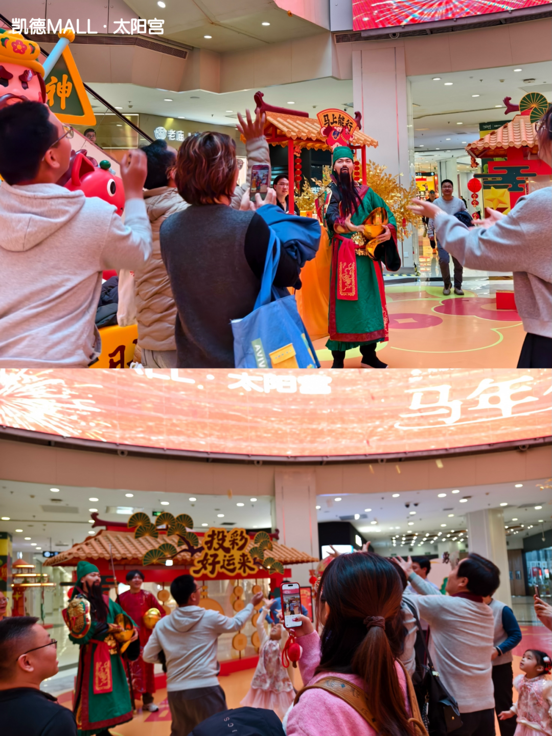 居民们拍照打卡、祈福纳财,商场秒变新春必打卡地,“文化体验+消费”的新模式让商场实现了客流与销售的双提升,热闹的背后是商户的坚守、安保的值守、环卫的维护——每一个打卡点的欢声笑语都有默默付出的身影。
