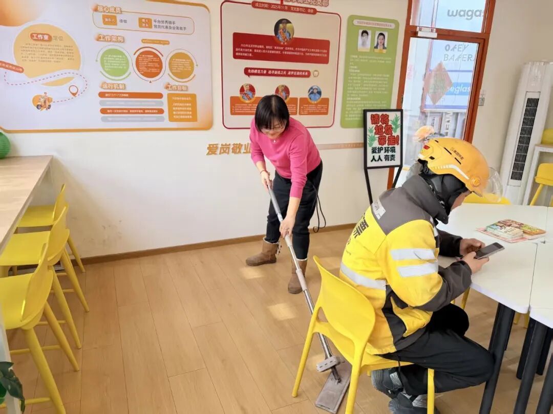 消息传开后,小哥们主动来了——有人帮忙整理货架、有人拿起扫帚打扫、有人摆好桌椅,“今天我们也当一回‘主人’,一起用新面貌迎接新一年。”
