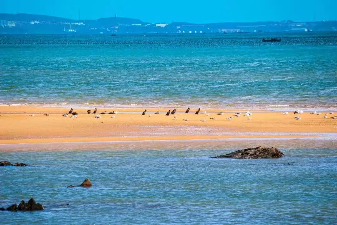 烟大海水浴场上,沙滩与碧海之间,是海鸥栖息觅食的天然场所。在这里,你可以更近距离地观察到海鸥在岸边的活动,体验感十足。