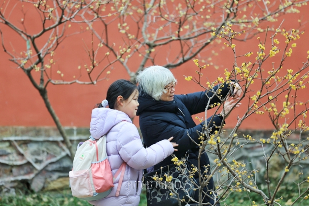 为了让大家更好地赏梅闻香,国家植物园(北园)历经十余年精心培育,从河南鄢陵、江苏、四川等地引进多个蜡梅品种,如今已完全适应北京气候,长势繁茂。目前卧佛寺内及周边,共栽植百余株蜡梅,涵盖狗牙、素心、虎蹄、磬口等十余个品种与变种,形态各异、香气层次丰富,堪称京城蜡梅观赏天花板。