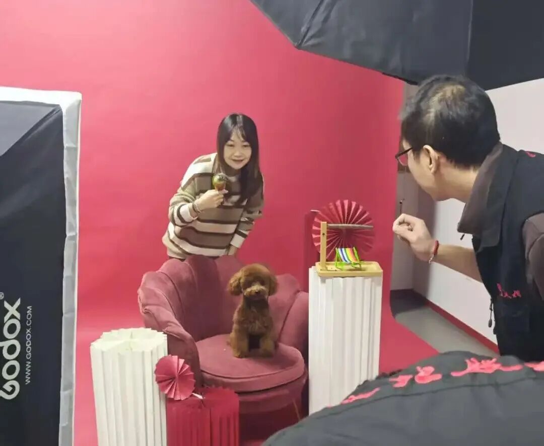 大北照相馆前门店内,各个摄影棚已是满负荷运转。一家几代人正穿着喜庆的服装,在摄影师的耐心引导下展露笑颜。移步至位于西花市大街的“大北朋友”宠物摄影店,小猫小狗在工作人员的逗引下摆出萌态,主人在一旁笑着用手机记录,快门声与欢笑声交织在一起,成为最动人的旋律。