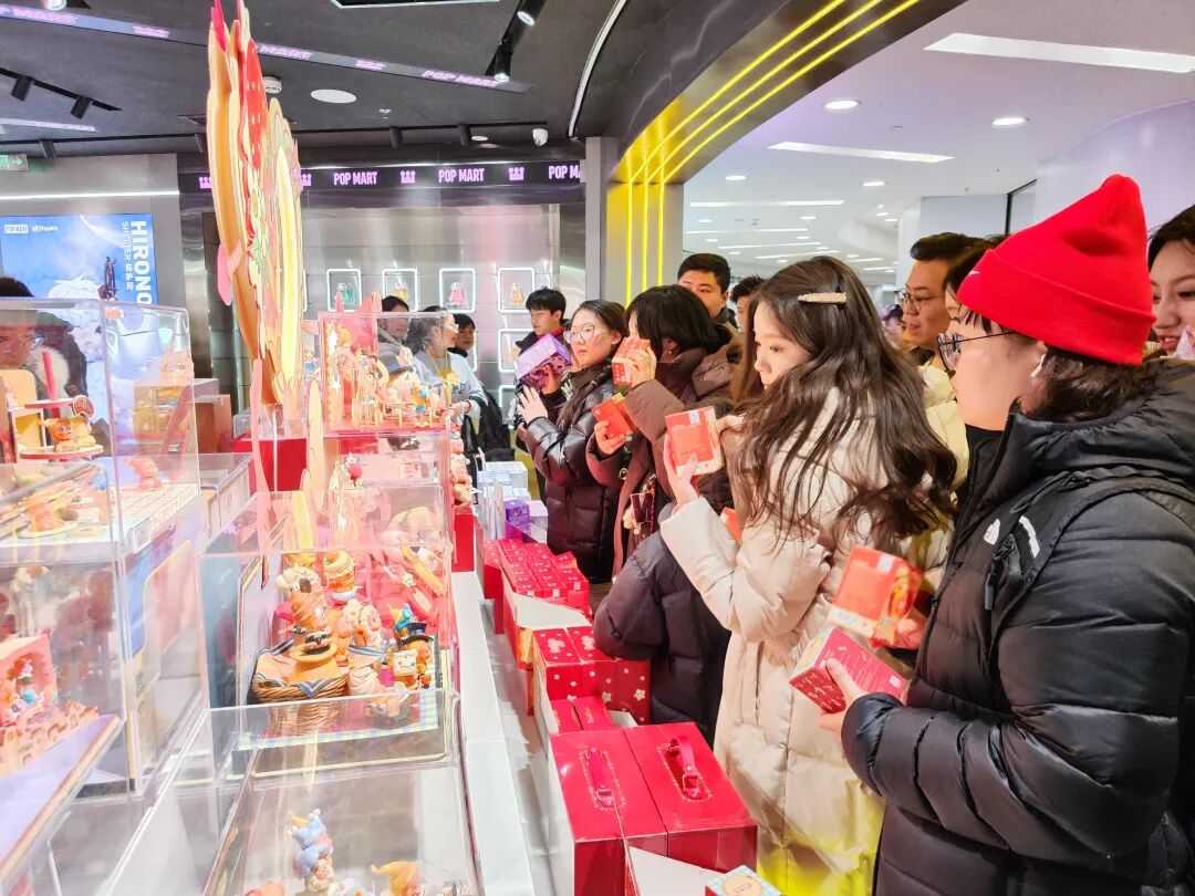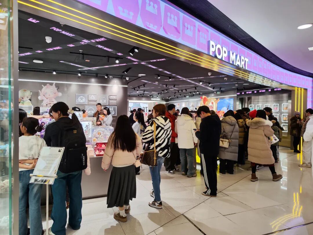 今年1月新开业的HERE奇梦岛,将国风与潮玩融合,WAKUKU的限定款一经上架便引发排队抢购热潮。而地下二层的谷子店里,热门二次元IP的徽章、立牌、色纸等周边应有尽有,粉丝们组团“扫谷”,为“本命”买单,在同好的交流中收获归属感,这份同温层内的社交快乐,也是悦己消费的重要体现。