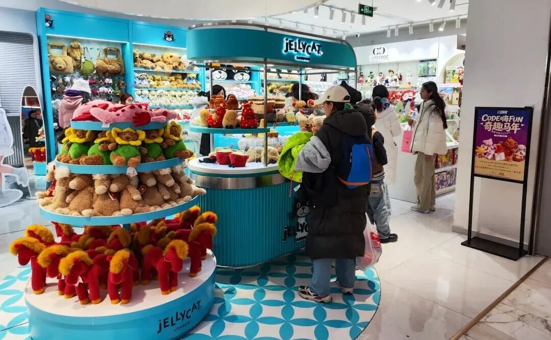 王府井银泰in88内的JOYCODE,是北京为数不多能提供Jellycat玩偶刺绣服务的门店之一,各式Jellycat毛绒玩具整齐摆放,蔬菜、盆栽、甜品等充满创意的萌趣造型让人爱不释手,配套的玩偶服饰、配饰也一应俱全。店内上新了一批春节款服饰,红火的配色和传统的纹样透着喜庆。刺绣台前站着等待的消费者,刺绣内容多是名字、祝福等专属印记,顾客董女士说:“之前给朋友刚出生的宝宝送了一个绣着他名字的毛绒小龙,今年春节想定制一个独属于自己的小兔子,新年犒劳一下自己。”毛绒经济的温暖,已成为悦己消费的温柔底色。