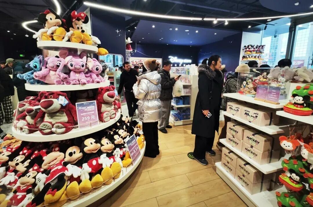 王府井喜悦则为潮玩消费增添了更多沉浸式体验。迪士尼商店快闪店以近400平方米的空间,打造出蓝紫白渐变的梦幻氛围,米奇、米妮等经典IP周边琳琅满目,北京限定款糖葫芦米奇更是成为大热的“爆款”,不少家长表示,这里“不只是购物的地方,更像是一次短途的亲子微旅行”,孩子玩得开心,大人也能找回童年的快乐。