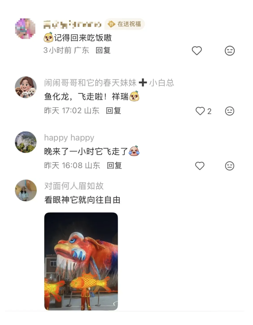 这只鳌鱼“飞”出数公里后,最终在龙山文化发源地章丘落地。当谜底揭晓,全网瞬间被这份巧合戳中——这哪里是意外出逃,分明是瑞兽自带导航,从上新街的烟火里起飞,奔赴章丘的千年文脉中“化龙”,为济南这两处宝藏打卡地,添满了马年专属的祥瑞福气!